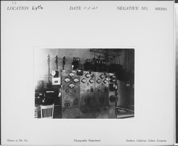 Lytle Creek, Fontana Powerhouse - [Interior shot showing back side of Switchboard at Fontana Powerhouse]