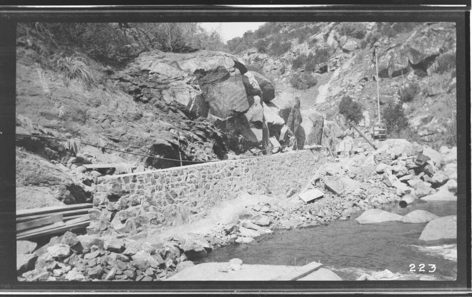 The Middle Fork headworks while under construction at Kaweah #3 Hydro Plant