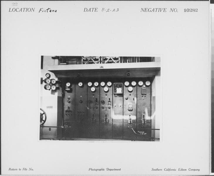 Lytle Creek, Fontana Powerhouse - [Interior shot showing back side of Switchboard at Fontana Powerhouse]