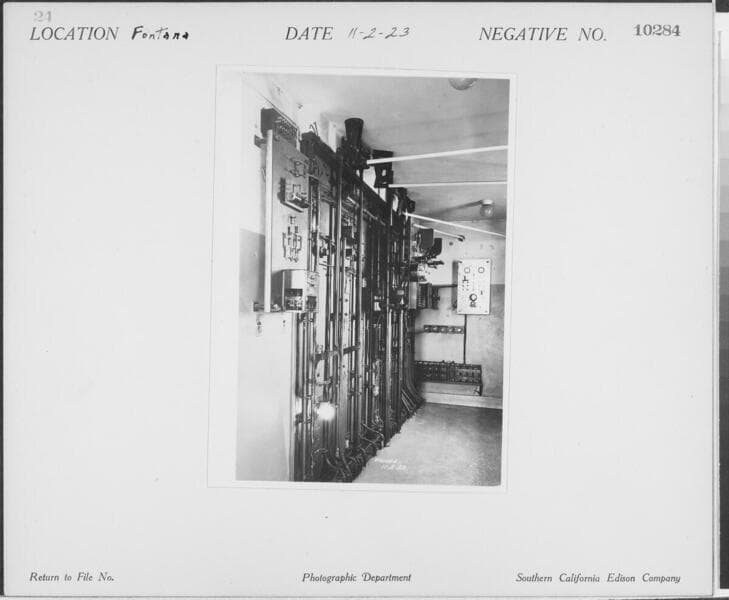 Lytle Creek, Fontana Powerhouse - [Interior shot showing Switchboard at Fontana Powerhouse]