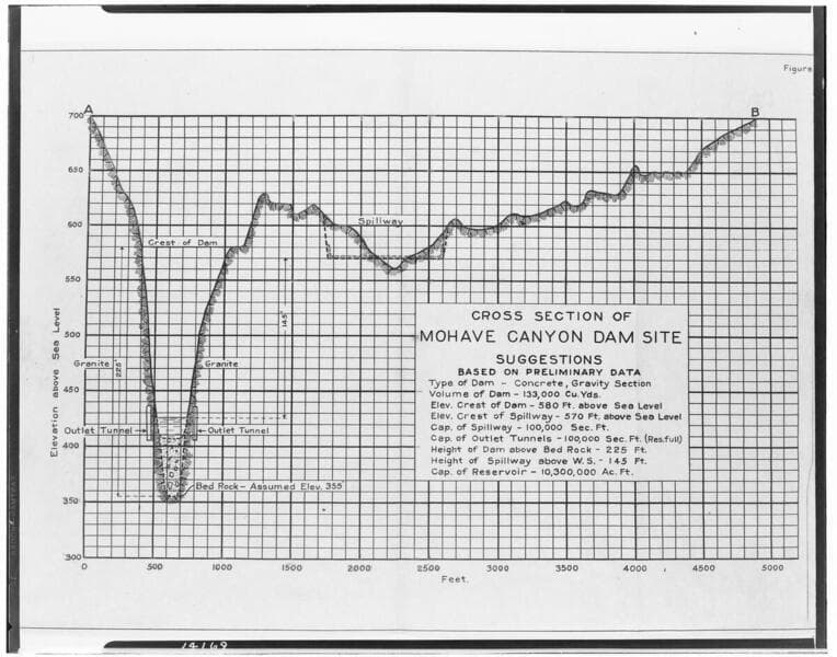 Colorado River - Cross-section Mohave Canyon Dam Site