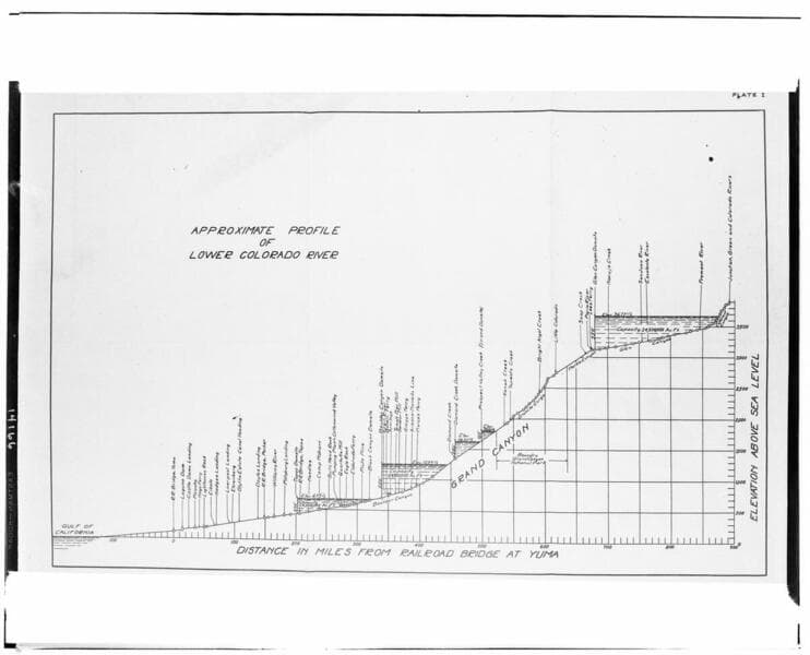 Colorado River - Profile of Lower Colorado River - LaRue Report - [showing proposed hydroelectric projects].