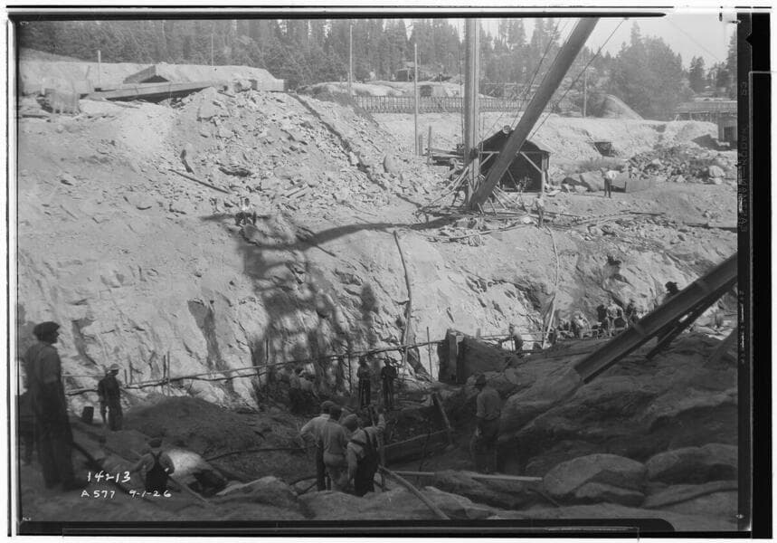 Big Creek, Shaver Lake Dam - Trench near southern end of dam - First Concrete.