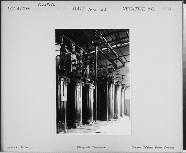 Castaic Substation - [Interior; control room, and telephone switchboard]