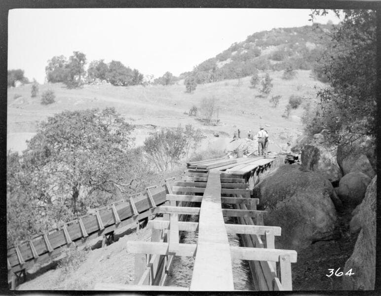 A construction crew working on the construction of the reservoir of the Tule Plant