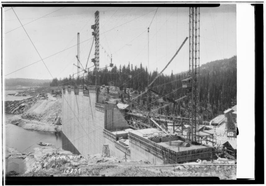 Big Creek, Shaver Lake Dam - Looking across Shaver Dam showing middle section complete