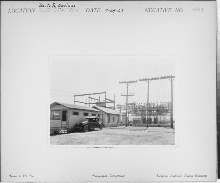 Santa Fe Springs Substation - General view from northwest [showing station building and Racks].