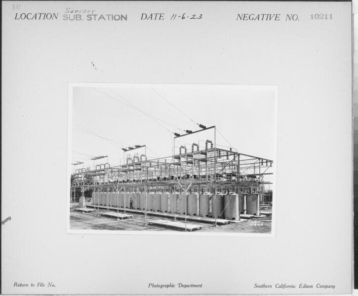 Saticoy Substation - rear view [showing Cooling Tower, Racks, Operator's Cottages, and Water Tower]