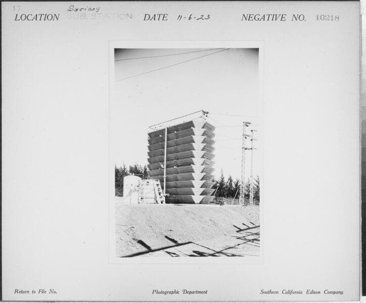 Saticoy Substation - rear view [showing Cooling Tower, Racks, Operator's Cottages, and Water Tower]
