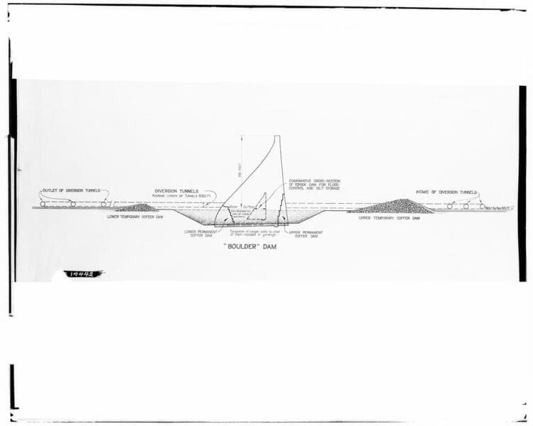 Colorado River - Copy of Drawing (HOXIE) - Comparitive outline of Boulder Dam.