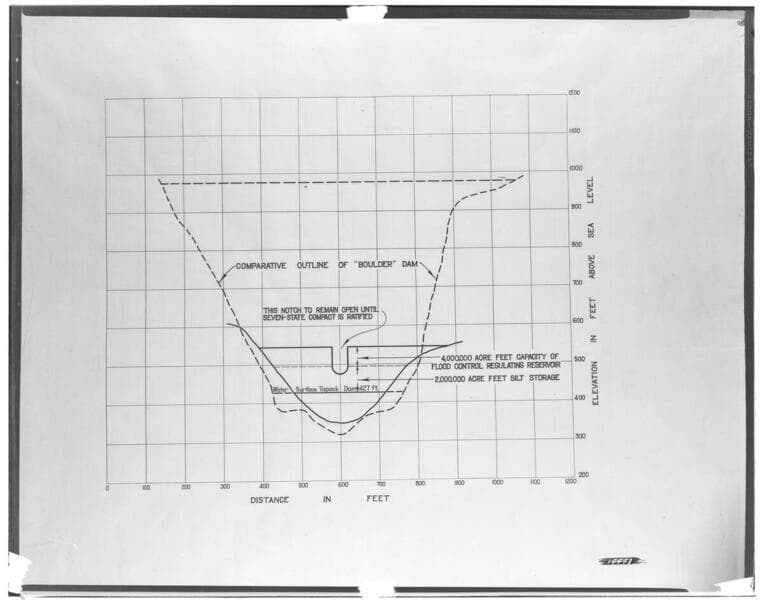 Colorado River - Copy of Drawing (HOXIE) - Comparitive outline of Topoc Dam & Boulder Dam.