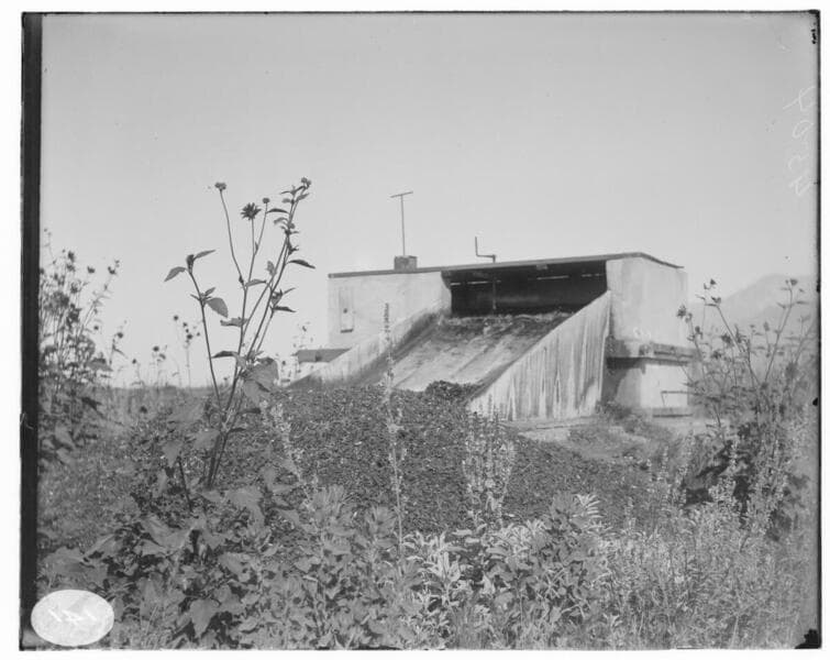 An automatic rubbish rake along the canal line at Santa Ana River #1 Hydro Plant