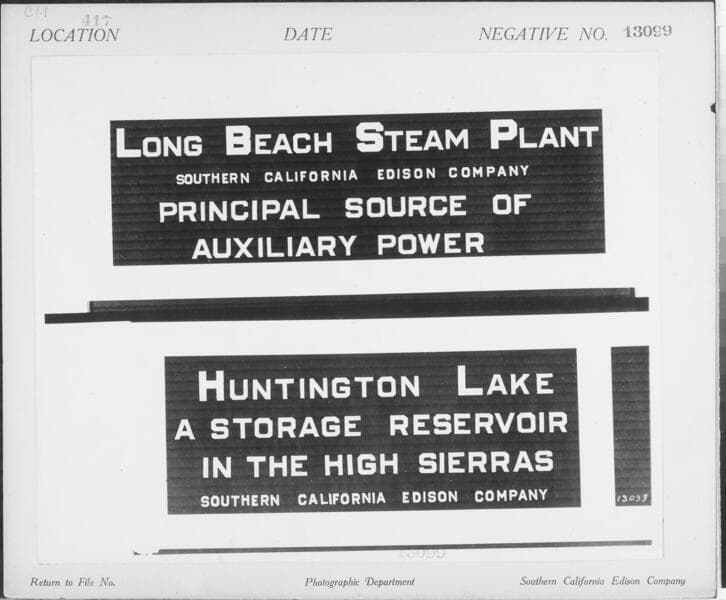 C1.1 - Charts miscellaneous - Titles - Long Beach Steam Plant & Huntington Lake storage reservoir.