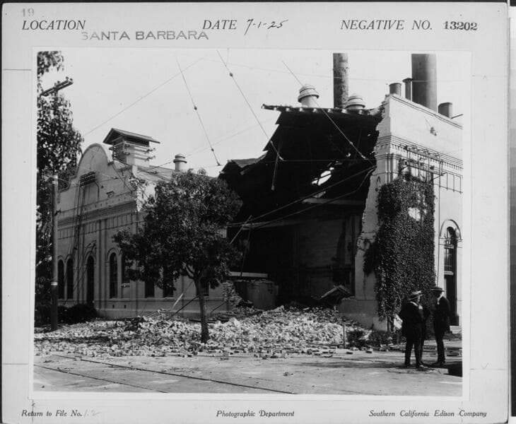 Santa Barbara Steam Plant - walls collapsed at plant during earthquake.