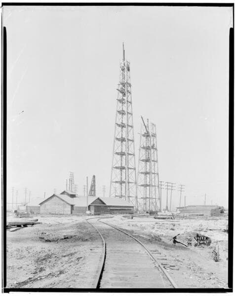 Long Beach Steam Station, Plant #3 - Special derrick designed by Mr. Shuffleton for erecting towers.