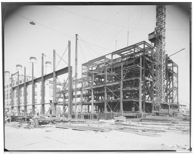 Long Beach Steam Station, Plant #3 - General view of steel structure looking northwest.