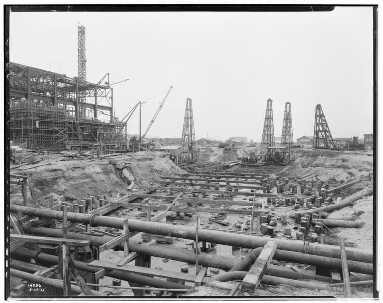 Long Beach Steam Station, Plant #3 - Excavating and piling for intake etc.