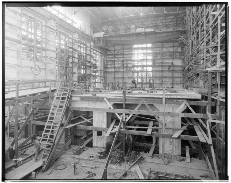 Long Beach Steam Station, Plant #3 - Looking down on turbo support, showing reinforcing rods.