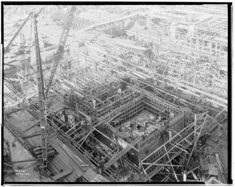 Long Beach Steam Station, Plant #3 - Looking down on forms for turbine support.