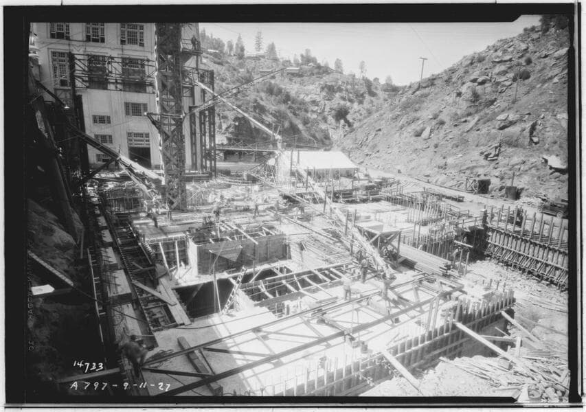 Powerhouse 2a construction. Looking downstream at PH2 and foundation for PH2a.