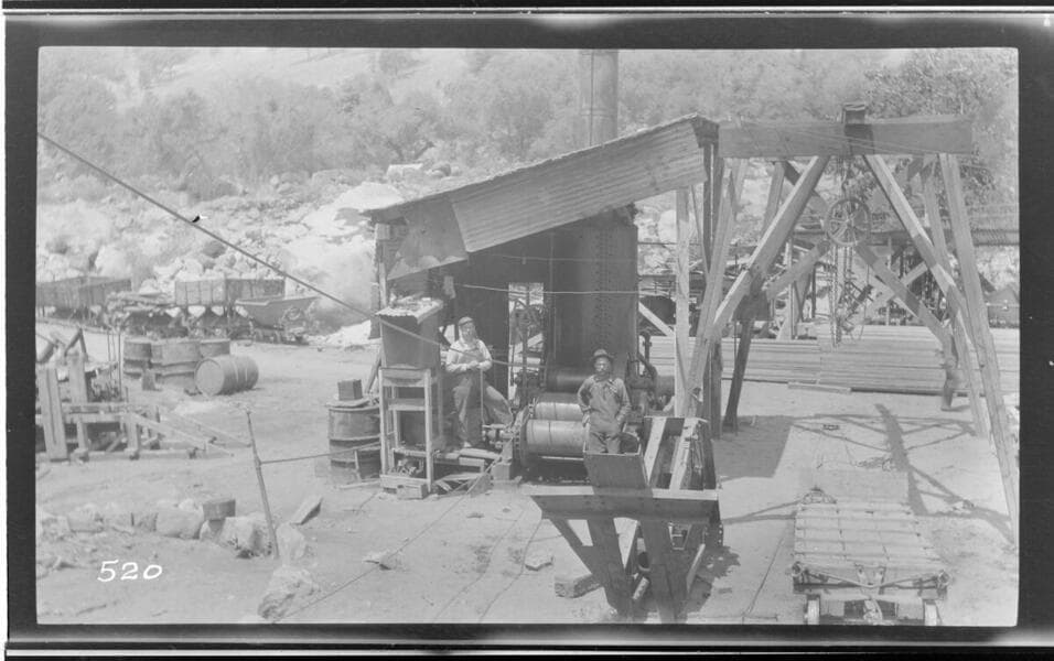 The construction crew at the hoist at the construction camps at Kaweah #3 Hydro Plant