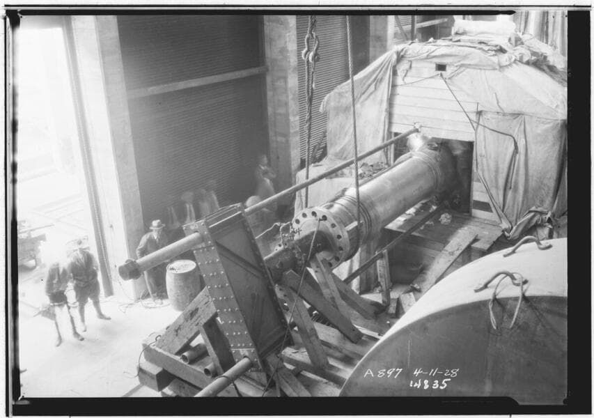Powerhouse 2a - Putting shaft for Allis Chalmers unit through rotor.