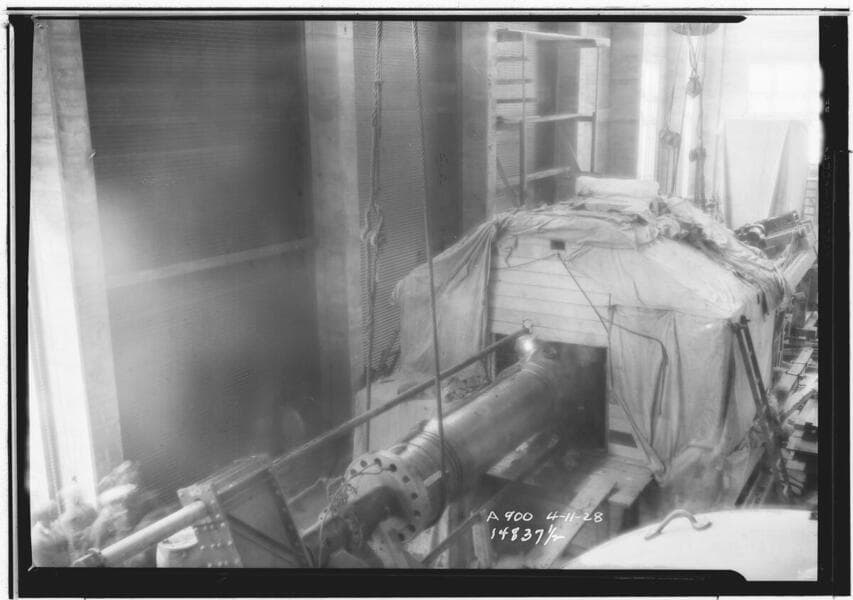 Powerhouse 2a - Putting shaft for Allis Chalmers unit through rotor.