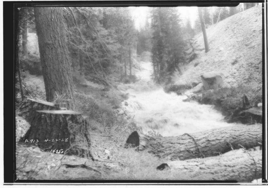 Big Creek, Huntington-Pitman-Shaver Diversion - Showing spill in vicinity of "Cascades" approximately 1/2 mile below Camp 73.