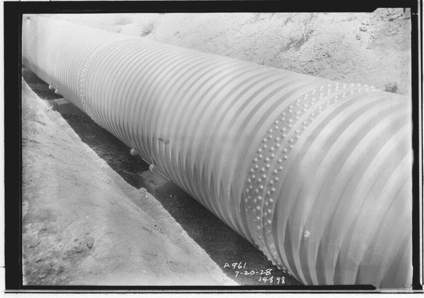 Powerhouse 2 & 2A - Lower end of Penstock 2A, showing forged seamless pipe.