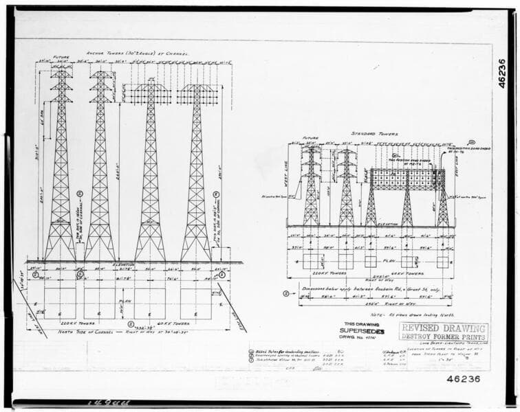 C1.1 - Charts miscellaneous - Drawing #4508 of transmission towers.