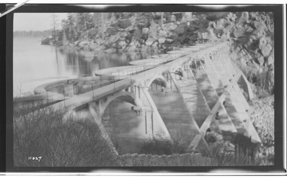 Power Producers - Not SCE - Bear Valley Dam [Big Bear Dam - San Bernardino - Entrados of one arch with wood forms in place. Possibly during construction of original multiple-arch dam.]