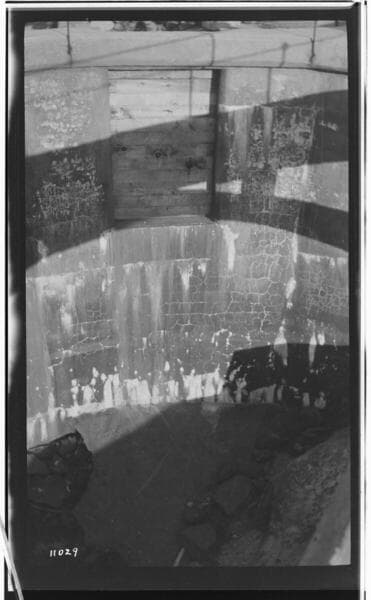 Power Producers - Not SCE - Bear Valley Dam [Big Bear Dam - San Bernardino - Entrados of one arch with wood forms in place. Possibly during construction of original multiple-arch dam.]
