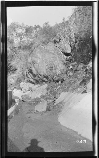 View of storm damage to the conduit at Kaweah #3 Hydro Plant