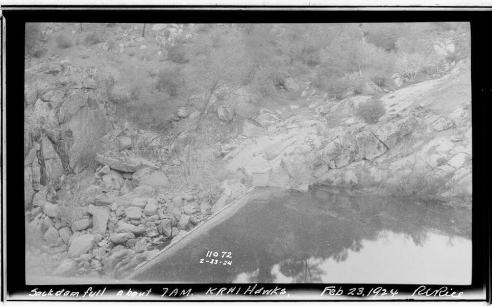 Kern River No. 1 - Sack dam [on Democrat Dam] at headworks near Democrat Springs.