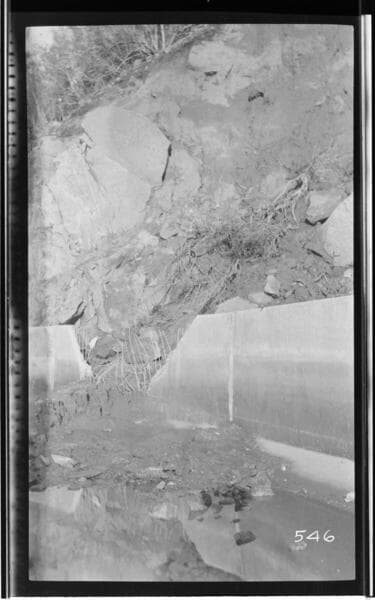 View of storm damage to the conduit at Kaweah #3 Hydro Plant