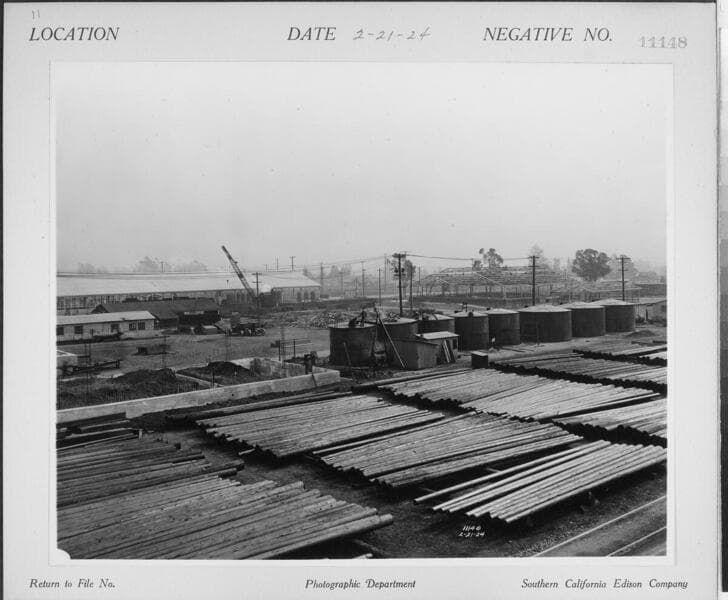 General Store, Pole Yard - Alhambra Pole Yard viewed from tower - Poles and Oil Tanks for pole treating plant.