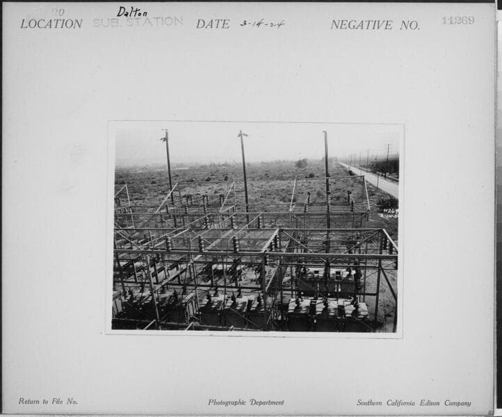 Dalton Substation - [Rack with cooling tower and station buildings in background]