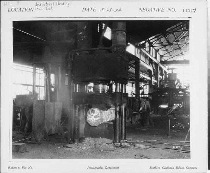 H1.1 - Heavy Duty Industrial misc. - Union Tool Co. - Industrial heating - Pressing out steel ingots.