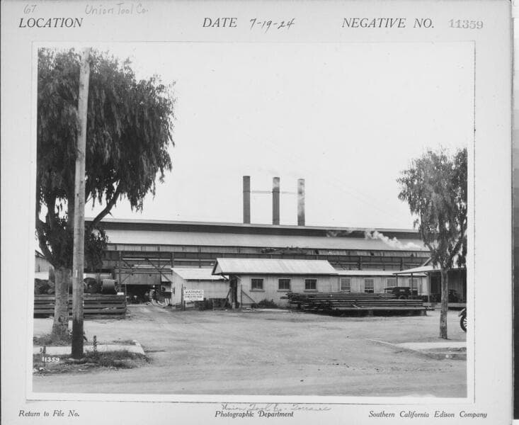 Power Consumers - General - Torrance, Union Tool Company [with electric trolly line railway running by the facility.]
