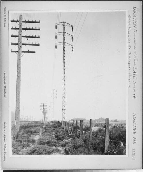 Long Beach-Lighthipe-Laguna Bell Transmission Line - Steel towers at Cerritos Crossing near Long Beach Steam Plant.