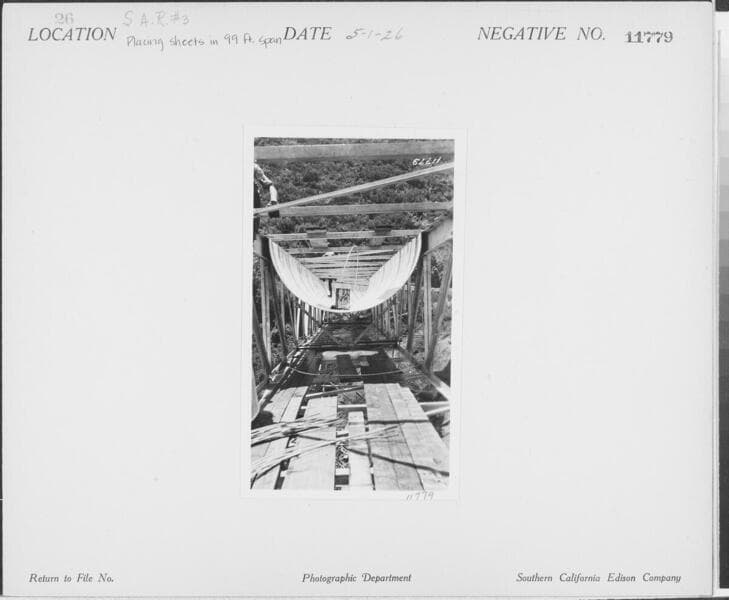 Santa Ana River #3 Powerhouse - Looking downstream on 99 foot truss span [steel frame flume under construction]