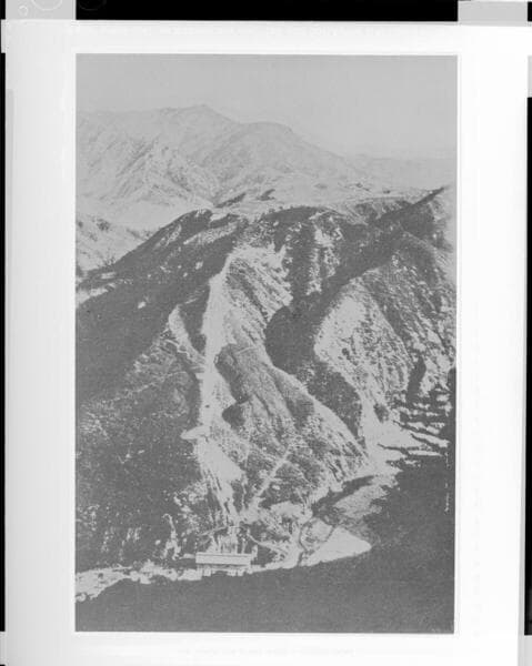 Operator Taylor standing on the summit of the peak opposite the power house at Santa Ana River #1 Hydro Plant