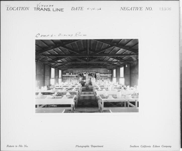 Vincent Transmission Line - Construction Camp in Brea Canyon - Dining Room or Mess Tent.