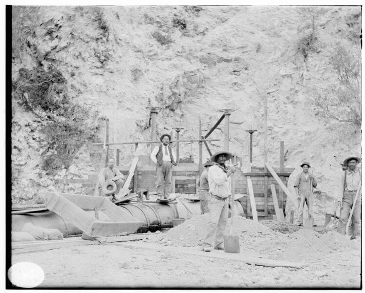 A construction crew working on the penstock at Kaweah #3 Hydro Plant