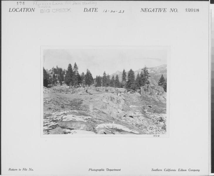 Big Creek, Florence Lake Dam - Florence Lake site of Rock Fill Dam.