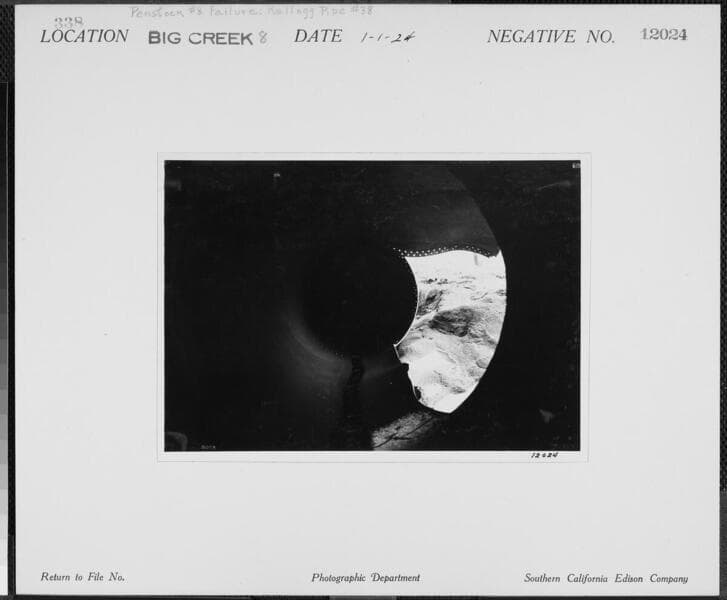 Big Creek Powerhouse #8 - Penstock #8 failure - Inside patch, Kellogg pipe #1