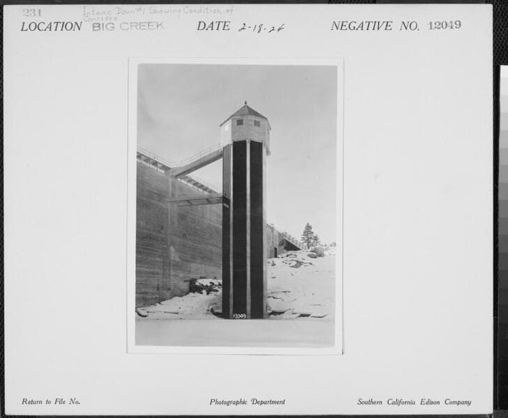 Big Creek Huntington Lake Dams - Intake Tower at Dam #1, showing condition of concrete.