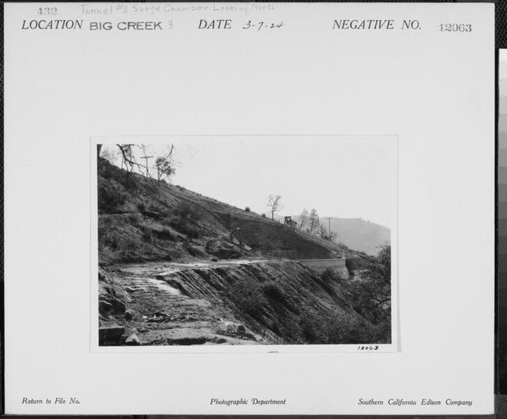 Big Creek Powerhouse #3 - Rim wall at top of Tunnel 3 Surge Chamber, looking northwest.