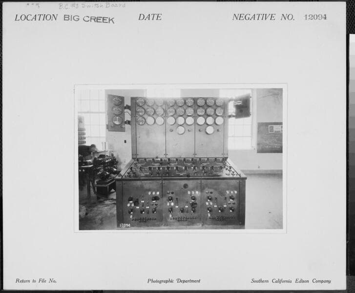 Big Creek Powerhouse #3 - PH #3 - Switchboard and desk in operating room.