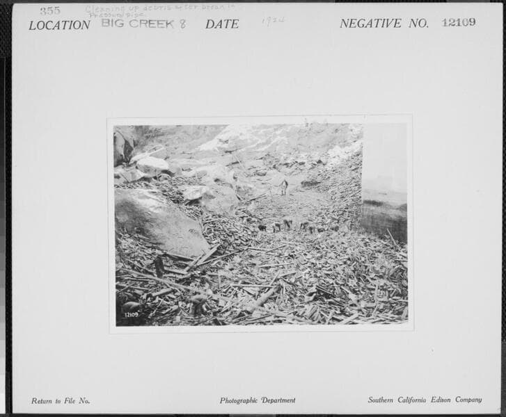 Big Creek Powerhouse #8 - Break in pressure main at Powerhouse #8.